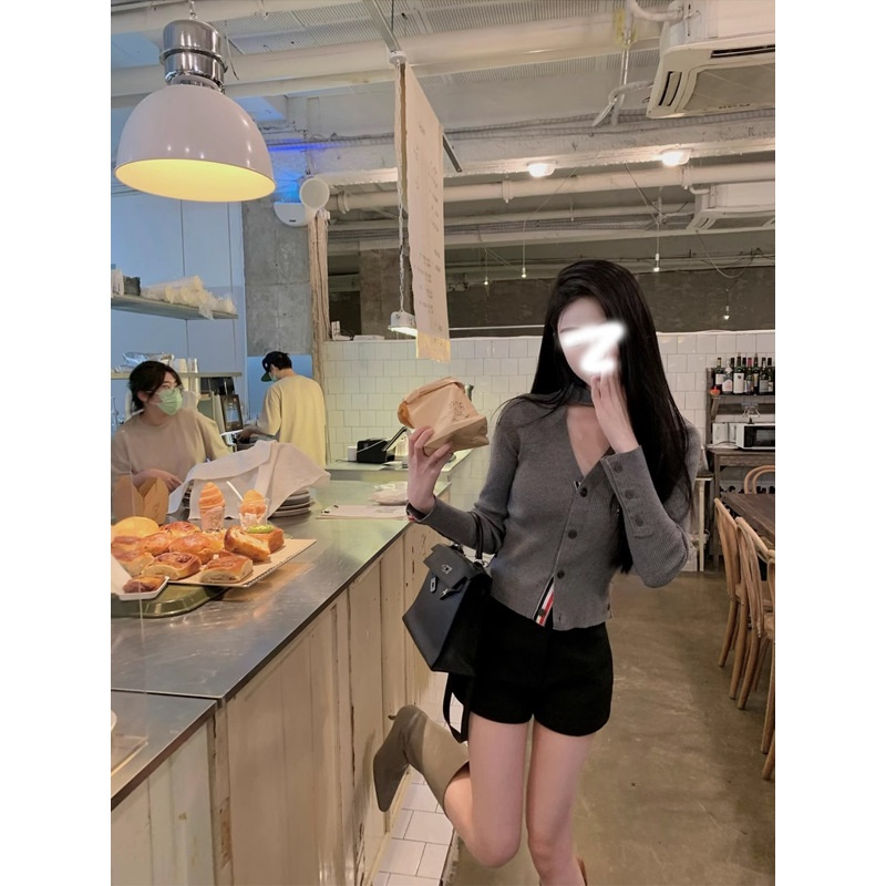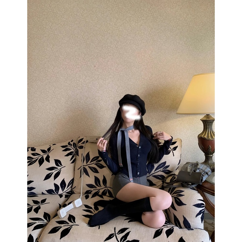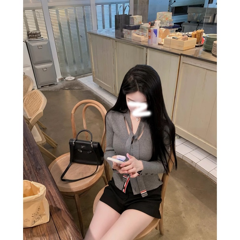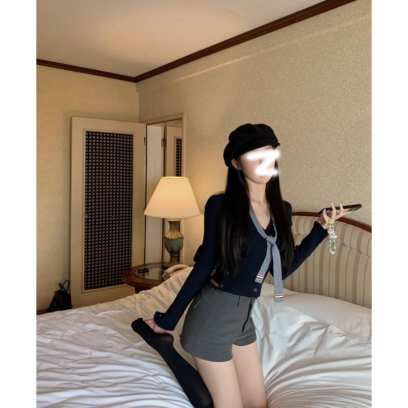Contrast-color Ribbon V-Neck Slimming Knitted Cardigan Sweater